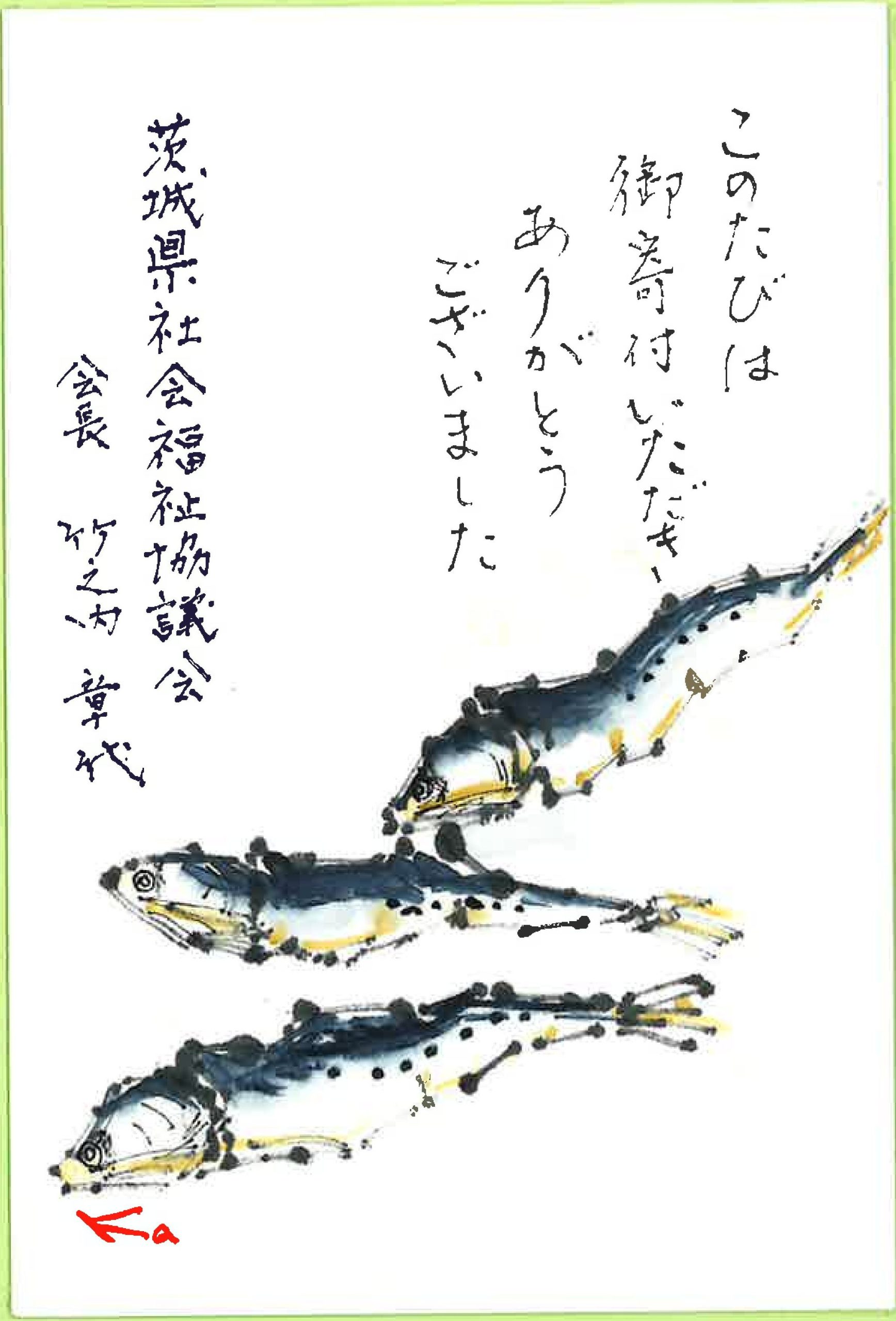 | 9月 | 茨城いのちの電話、筑西市社協、河内町社協、(株)弘和電材社、龍ケ崎市社協、日立市社協、 松嵜武夫、行方市社協、匿名(1件) |