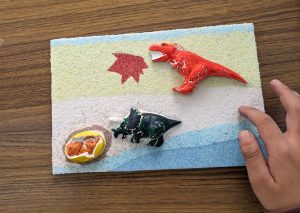 | 提供内容 | SDGs石炭を学び砂絵とミニ恐竜ジオラマづくり講座や、木の葉を使った「木葉切絵」や「恐竜トリックアートづくり」等の講座 |